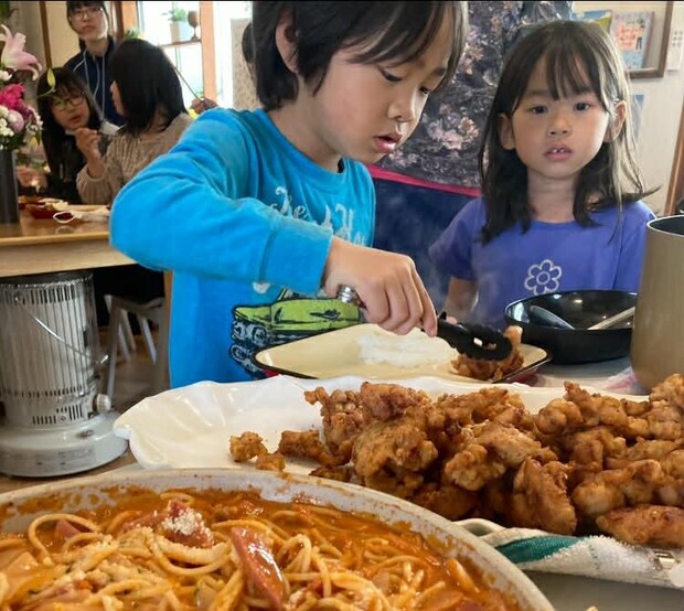 たくさん遊ぶとおなかがすく。お待ちかねのお昼ごはんが出来上がった。