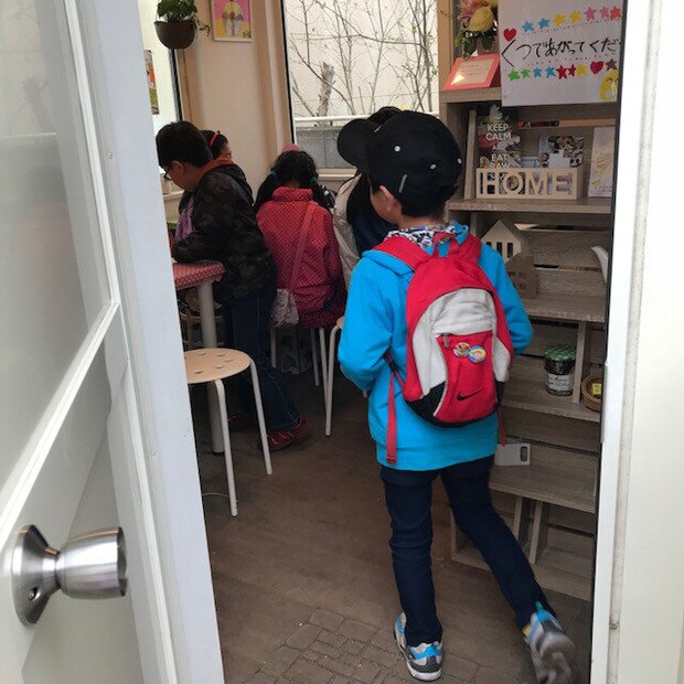 元気な声で入ってくる子どもたち。恥ずかしいのか、何もいわずに入ってくる子どももいる。