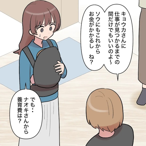 「ソウにもこれからお金がかかるし、ね?」あまりにも軽い口調でお願いしてくる義母に、私は困惑します。子育てにお金がかかるのはわかるけど、うちもヒマリが産まれたばかりだし、お金はこの子のために貯めておきたい・・・。私は「ナオキさんからの養育費はないんですか?」と尋ねました。
