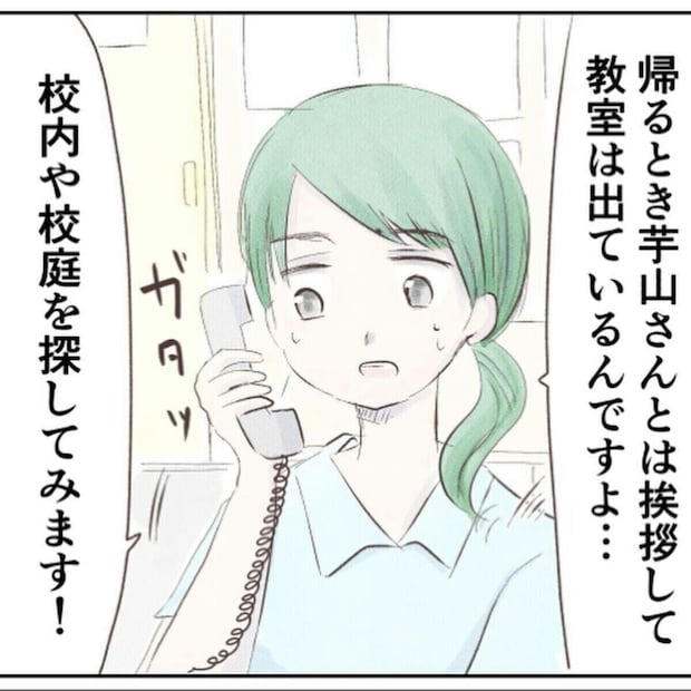 焦る気持ちをどうにか落ち着かせ、学校へ連絡することにしたようみんさん。担任に事情を話すと、「あいさつをして教室を出るのは見た」との返事。校内を探してみるので少し待っていてほしいと言われ、一度電話を切りました。まだ校内にいる可能性がありますし、学校に確認をするのは大事なことですよね。