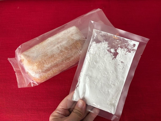 別の小袋に入っていた粉砂糖をかけていただきます。