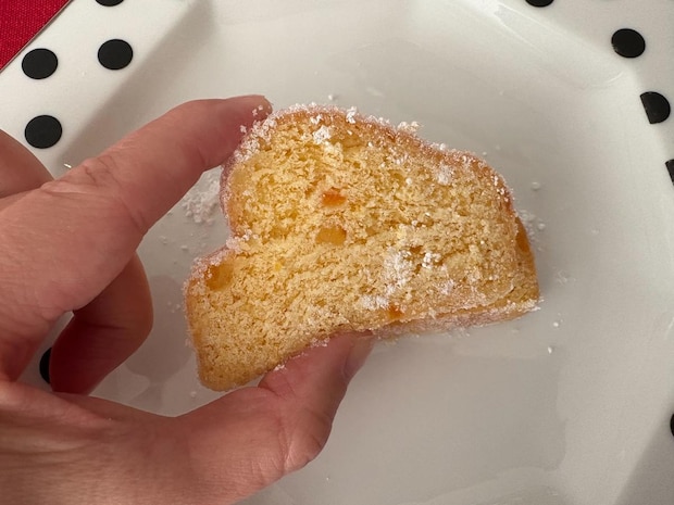 表面についているシャリシャリとした食感の砂糖が心地よく、中に入っているオレンジピールの蜜漬けは酸味があってとても爽やか!