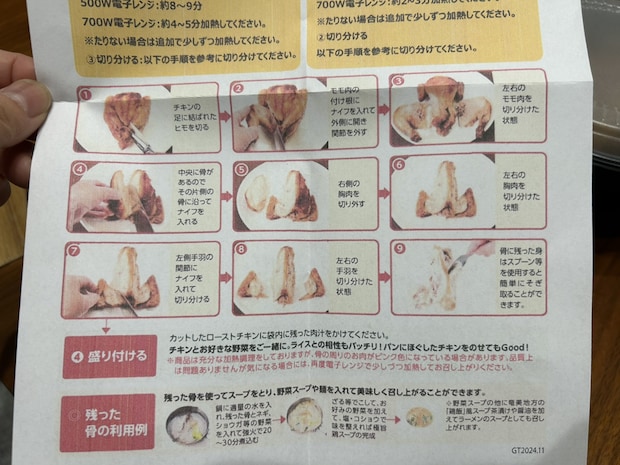 セットには丁寧に「ローストチキンの切り分け方」の説明書がついています。
