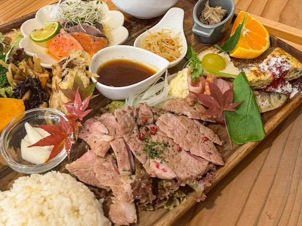 季節の食材を活かしたおかずが彩りよく並び、見た目も味も大満足のランチプレートでした。