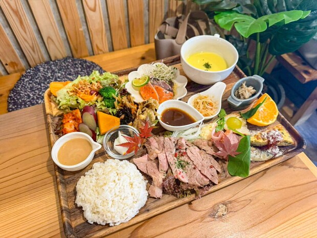 季節の食材を活かしたおかずが彩りよく並び、見た目も味も大満足のランチプレートでした。