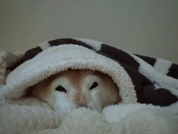 なので、いつもと一緒とはいかないけれど、近所の買い物などはマロたんも連れていきます。買い物をしている間、マロたんは車の中で待っています。寒い日は着る毛布を着て足元には湯たんぽも置いています。