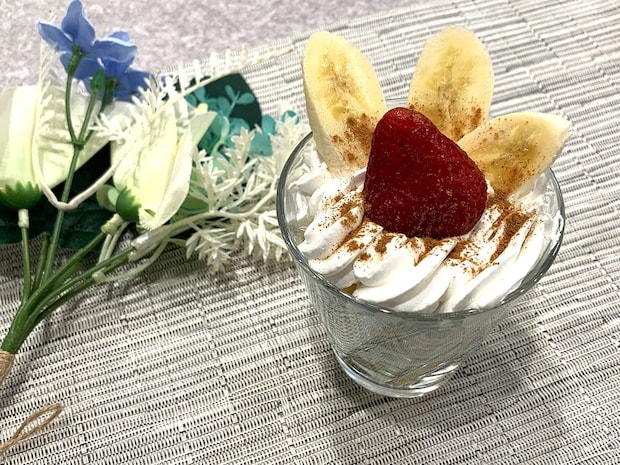 作り方は簡単で、器にカットしたスポンジシート、クリームを交互に重ねていき、最後にいちごやバナナなどをトッピングするのみ!