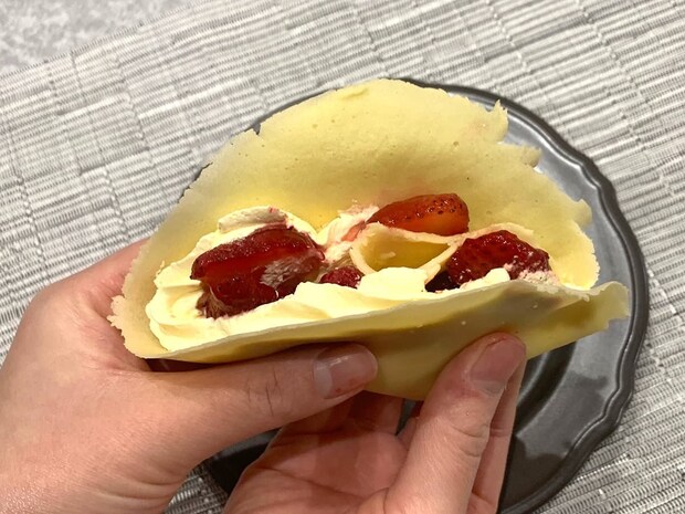 今回はカスタードホイップを使用し、クレープを作ってみることに!