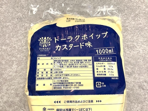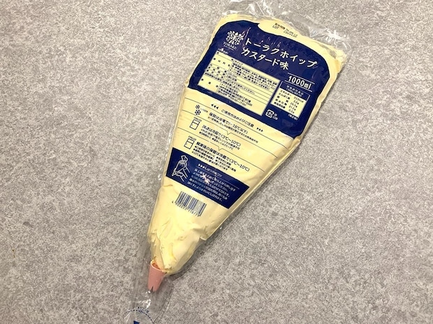先ほどのアマンディホイップと同様、冷凍状態で売られているクリーム。筆者はカスタード味を選択しましたが、他にもチョコレート味のホイップクリームも売られていました!