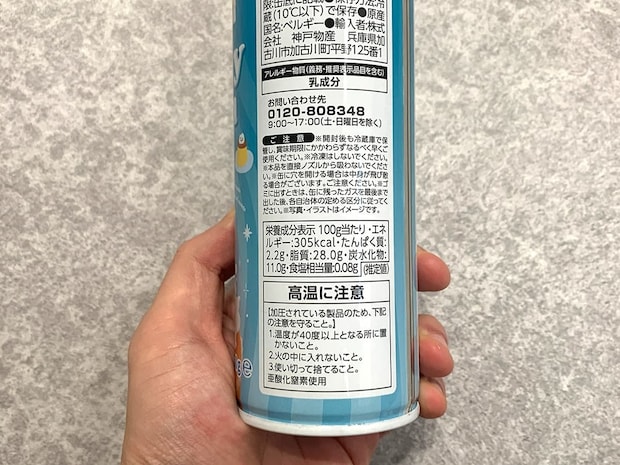 カロリーは100gあたり305kcal。先ほどのアマンディホイップよりは少し低い数値ですね!
