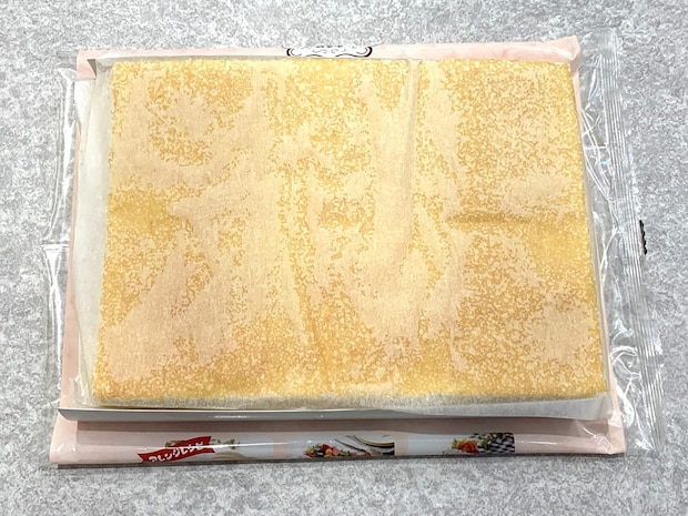 スポンジシートを袋から取り出してみました。長方形の形状をしており、ケーキの土台に使用できるのはもちろん、ロールケーキにも活用できそうです♪