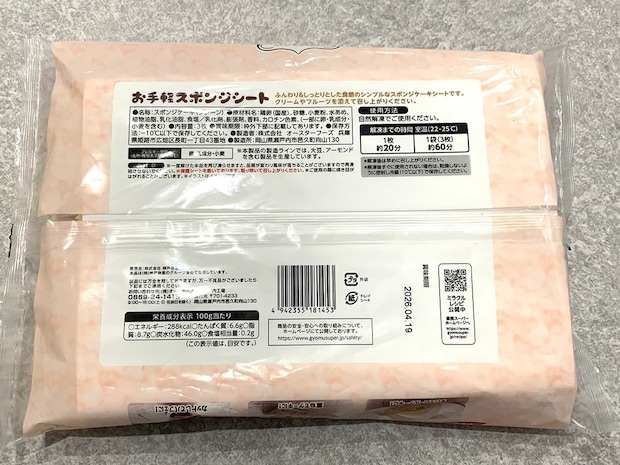冷凍のスポンジシートなので、賞味期限もかなり長め!筆者は2025年12月6日に本品を購入しましたが、賞味期限は2026年4月19日で設定されていました。