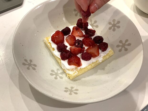 ホイップクリームを塗ったり、フルーツを乗せたりする工程がメインなので、子供とも一緒にスイーツ作りを楽しめますよ♪