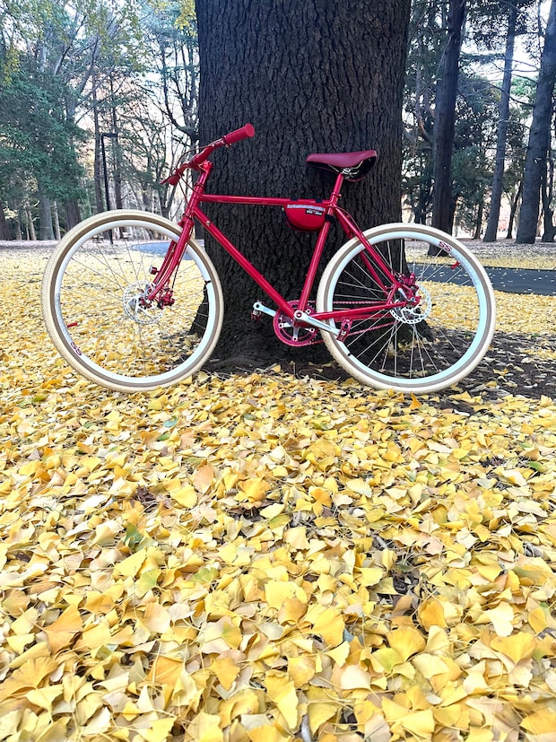 わたしは深呼吸をして自転車にまたがる。半年前から作っていたものがようやく完成した連絡を受け、先ほど納車を済ませ、今手元に赤い彼がいる。神は細部に宿るなんて言葉があるが、細やかなネジまで赤くしたこの自転車はそんな精密な集中力を持っている。いい仕事をしてくれた友人に感謝している。でも真っ赤にはせず、タイヤは白くした。全てが同じ赤で統一されてるのは違う。どこかで混ざっていなくちゃいけない。ミニマルで綺麗すぎる配列には必ず嘘が含まれている。