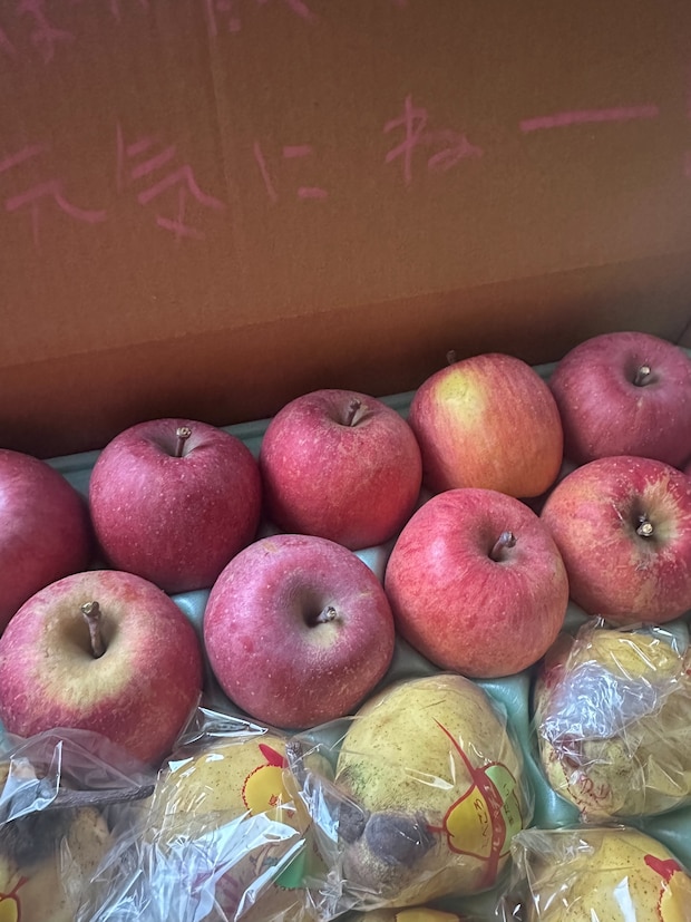 そんな声が、口に運ぶまでの間で聞こえた気がした。わたしは手に持っていた真っ赤なリンゴにかじりつく。土から芽ぶく時の衝撃、電気に変換される。枝葉が雨を受け止め、育った時間の経過が甘みと酸味の間をすり抜けて一気にわたしの身体を駆け巡る。福島のあんざい果樹園のりんごは、甘い年、蜜の少ない年、その年々の季節の巡り具合をいつも香らせている。わたしの東京に風が吹いた。