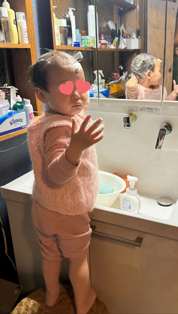 なんと、ハンドソープで上手に髪の毛を洗っていたわが子。これには、驚きですよね。ハンドソープで突然髪の毛を洗うなんて、誰も想像できないでしょう。