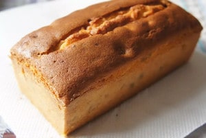 オーブンで45分焼けばできあがり。途中で中心に切り込みを入れれば、きれいな形に焼き上がります。