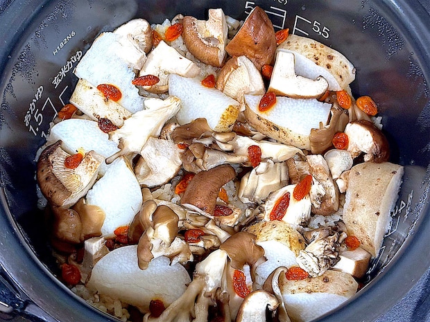炊飯器のフタを開けた瞬間、湯気とともにきのこの芳醇な香りと、しょうゆの香ばしい香りが立ち上って…まさに最高のひと時です♡