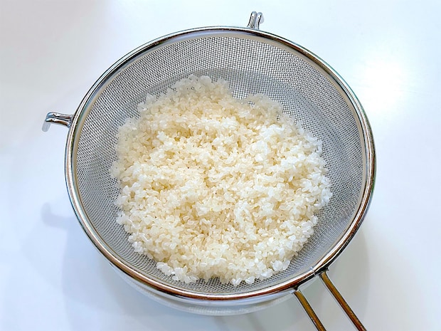 1. 米は洗って30分水に浸し、ザルにあげる。