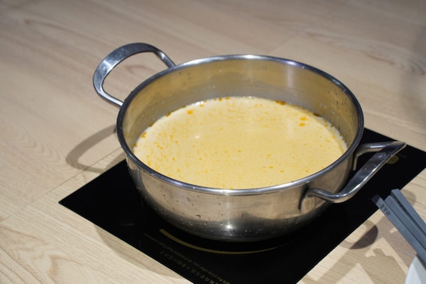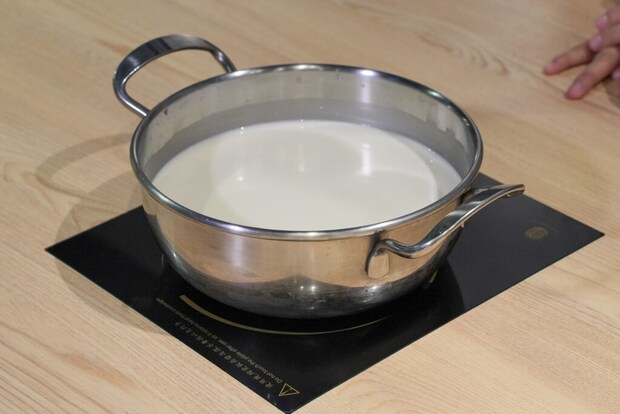 ひとつは基本のミルクベース、もうひとつはピリ辛のミルクスープ。