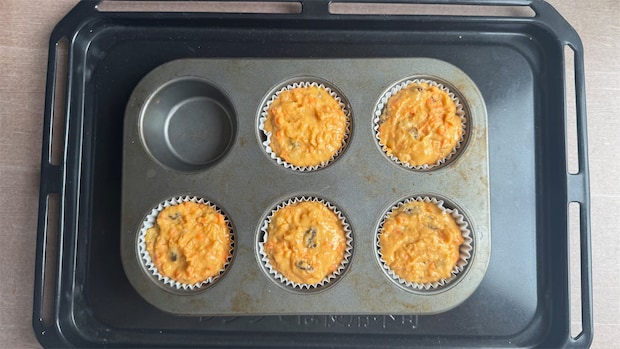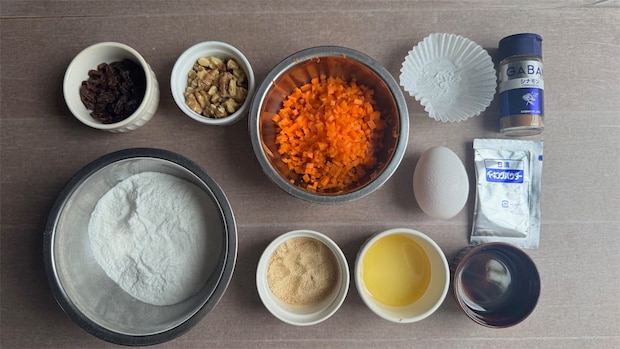 ・マフィン型にマフィンカップを入れる(両面シリコン加工耐油紙と表記されたものがくっつきにくくておすすめです)。