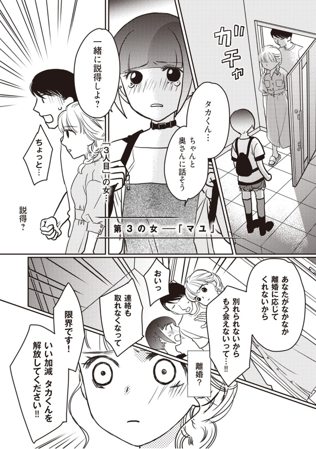 4人と浮気し、妊娠させたクズ夫に立ち向かう妻の姿を描く「4人の女を同時に妊娠させた夫」(原作・サレ妻さおり、漫画・モチ)から全4回連載でお届け。今回は第3回となる。