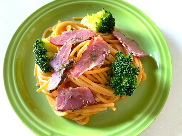 今回はトマトクリームソースで和えましたが、ペペロンチーノやカルボナーラにも抜群に合います。
