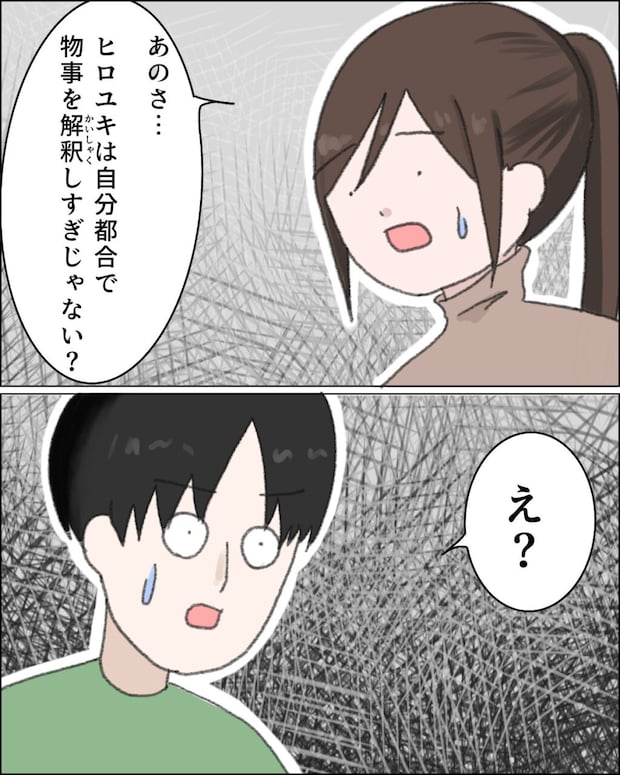 「あのさ・・ヒロユキは自分都合で物事を解釈しすぎじゃない?」とアキナさんに指摘されて「え?」と驚くヒロユキさん。