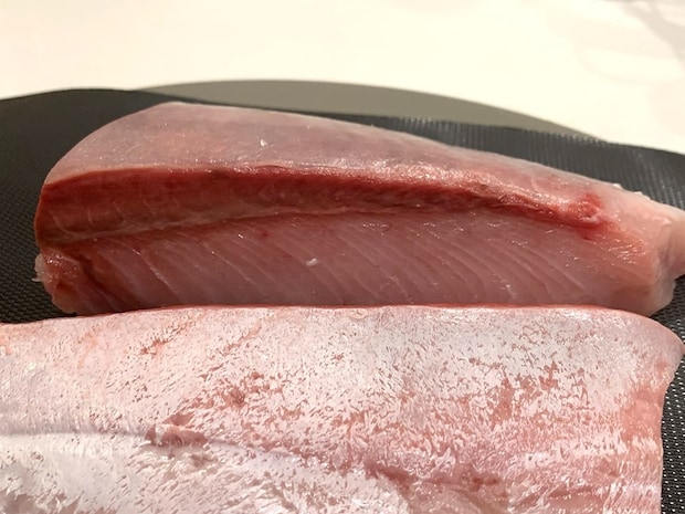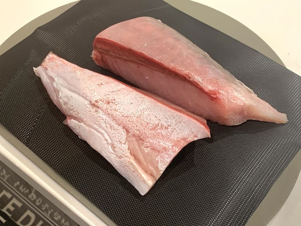 また、色も鮮やかなピンク色~赤みがかっているのがわかりますよね!素人目で見ても、お寿司屋さんで見かけるような新鮮なぶりである印象を受けました♪