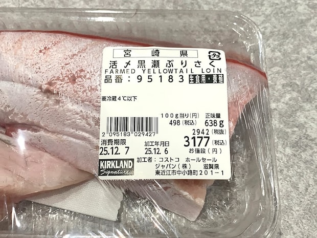 コストコで購入した活〆黒瀬ぶりさくがこちらです。