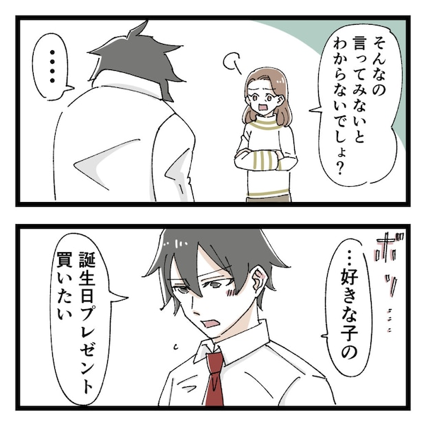 「そんなの言ってみないとわからないでしょ?」と粘る私に観念したのか、ショウは「・・好きな子の誕生日プレゼント買いたい」とぶっきらぼうにボソッと呟きました。