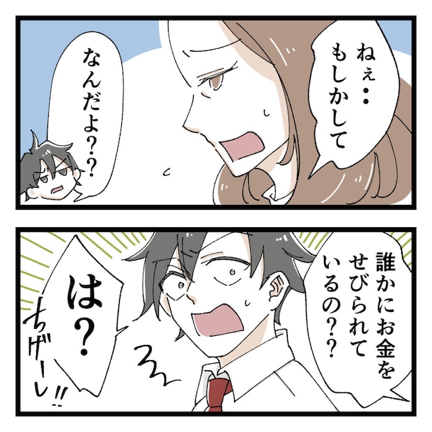どう考えてもおかしい。状況から考えて一つの可能性が頭に浮かんだ私は「ねぇ・・もしかして。誰かにお金をせびられているの??」と恐る恐るショウに聞きました。ショウは「は?ちげーし!!」と全力で否定しましたが、納得できません。
