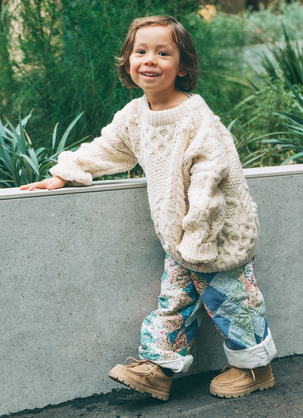 足元はベージュのスウェードシューズをオン! ボリュームのあるボトムスと合わせてこなれ感抜群なスタイリングに格上げ。