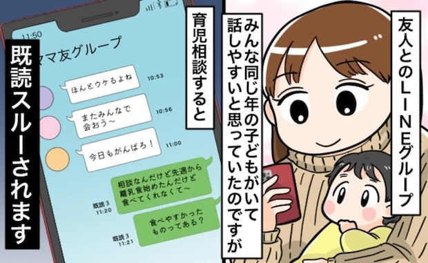 生時代の友人で同い年の子がいるメンバーのグループLINEがあるという投稿者さん。育児の相談をしたものの既読スルーで返事がこないことにモヤモヤしているようです。