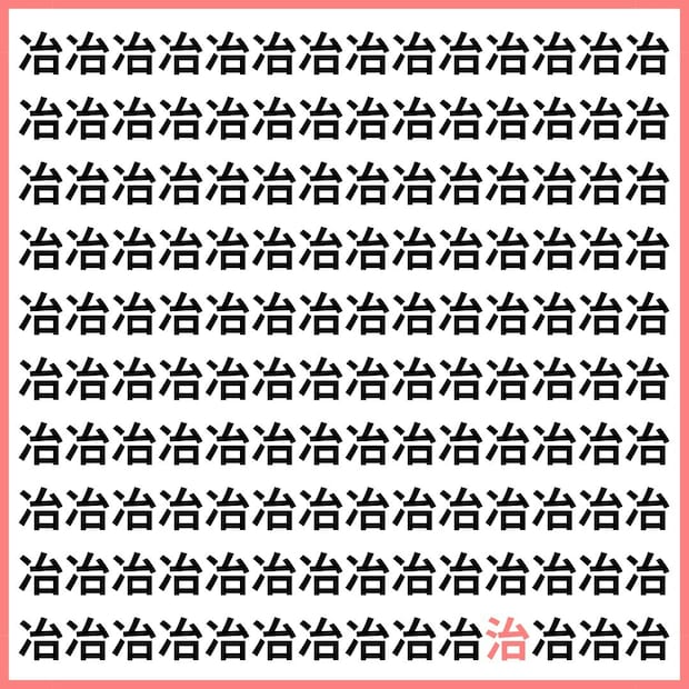 たくさんの「冶」の中に、1文字だけ違う漢字が混ざっています。