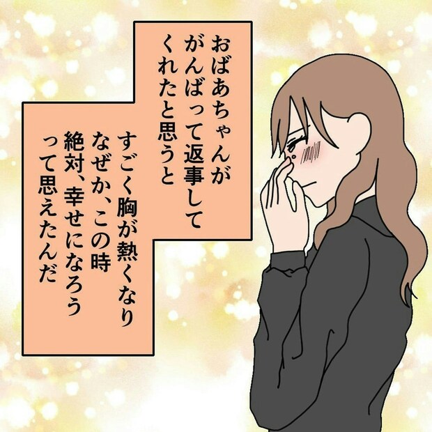 わたしちゃんの想いが、祖母に通じたのでしょう。祖母がけん命に応えてくれました。そして、「幸せになろう」と、思った瞬間でした。