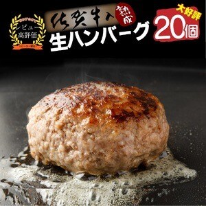 ふるなびの「佐賀牛入り熟成生ハンバーグ 20個(120g×20個)」は、佐賀牛が入った合い挽き肉を使用したハンバーグが20個入っています。