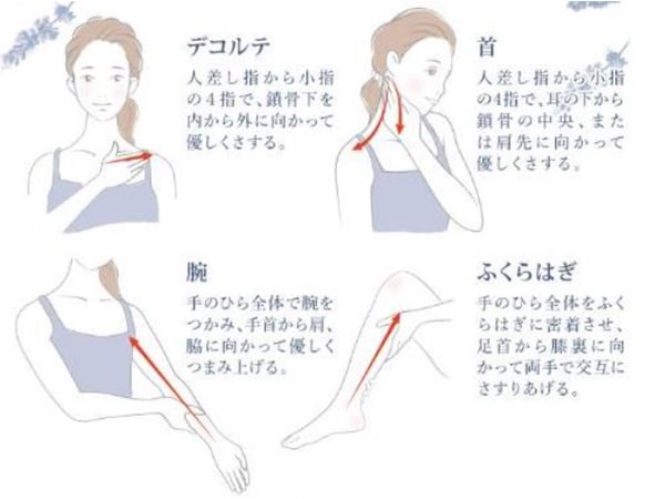 首・デコルテ、腕、ふくらはぎをやさしくほぐすことで温感全身ケアが可能。じんわり温まりながらリラックスしたひとときを過ごせる。