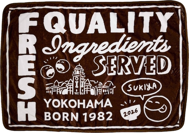 すき屋の2026年福袋に登場するのは3種のアイテムとお年玉クーポン。通販限定特別版ではさらに「どんぶり箸置き」と500円分のクーポンがプラスされますよ。すき家オリジナル ブランケット