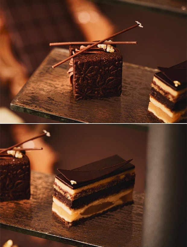 個性的なビターチョコレートの風味を楽しむほろ苦い大人のオペラ。ブランデー香る珈琲のジョコンドにキャラメルバタークリーム、シナモン風味の林檎のコンポート、ショコラガナッシュを層に重ねて味わい豊かに。アフタヌーンティー限定のスイーツなのでお見逃しなく。