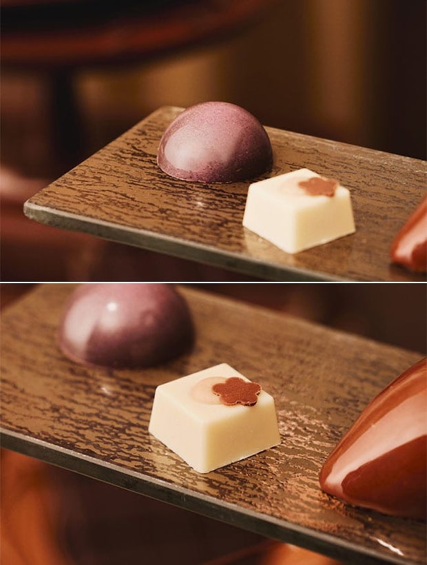 濃厚なキャラメル風味でなめらかなガナッシュが、中にしのばせた葡萄のコンフィの甘美さを引き立たせて、大人の味わいを演出。葡萄に見立てたフォルムがキュート。