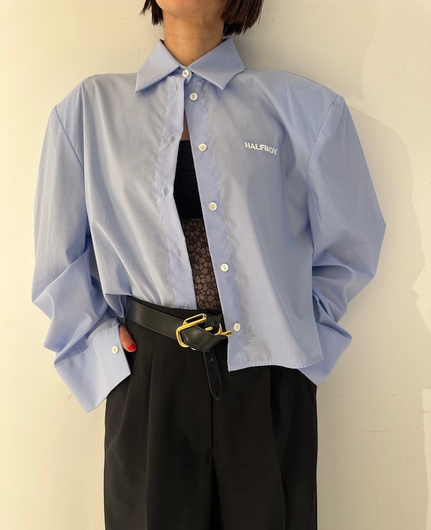「イタリアメイドのブランド、ハーフボーイ。肩パッドが入った斬新なデザインのシャツはジャケット見えもするのできちんと感もアップします」シャツ¥89,100(ハーフボーイ/エストネーション)