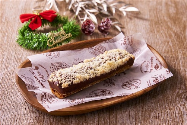 なめらかなチョコケーキにザクザクのクランブルを組み合わせた、食感のコントラストが楽しいバータイプのショコラスイーツ。