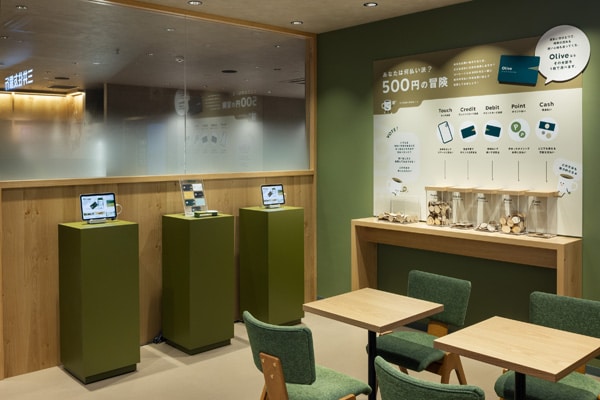 地下1階ではお金に関するセミナーなどを開催するほか、銀行窓口では各種手続きや資産運用などの相談も受けている。日常の決済手段の選択によって生じるメリットや利便性、ならびにOliveが適えるフレキシブルな支払方法を体感することが可能だ。
