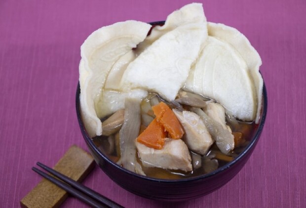 最後にご紹介するのは、八戸市周辺の南部地方を代表する郷土料理「せんべい汁」。
