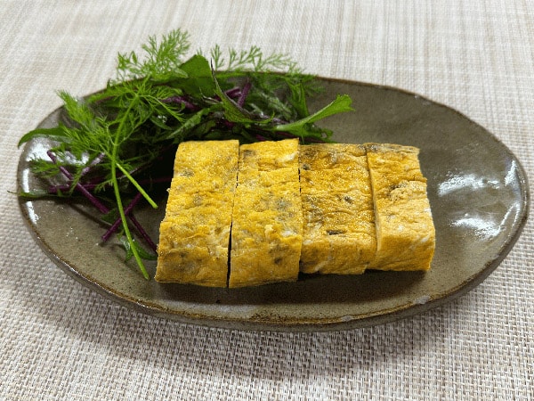 ヨモギドレッシングを使って「だし巻き卵inよもぎ」を作ったり、