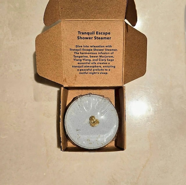 静かな逃避のためおシャワースチーマーと名付けられたコレは、シャワールームで最初ちょっとお湯をかけて反応させることで、シャワールーム内がいい香りに包まれリラックスできるというものです。