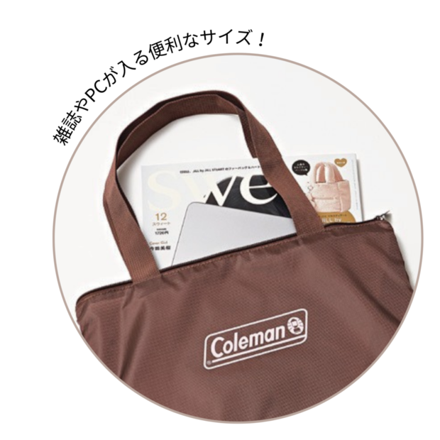 宝島社sweet2月号の特別付録は、アウトドアブランド「コールマン」とコラボしたトートバッグ&クロワッサン形ポーチチャームがセットで登場! デイリーユースに可愛い見た目と機能性を兼ね備えたユーティリティなアイテムが完成しました。