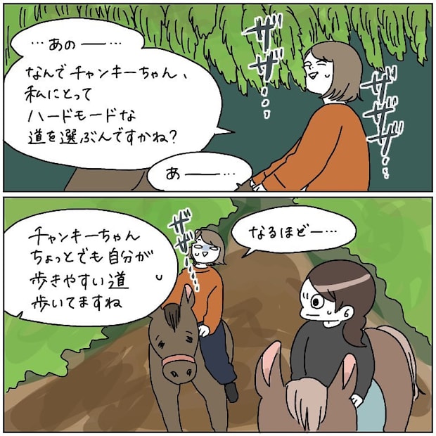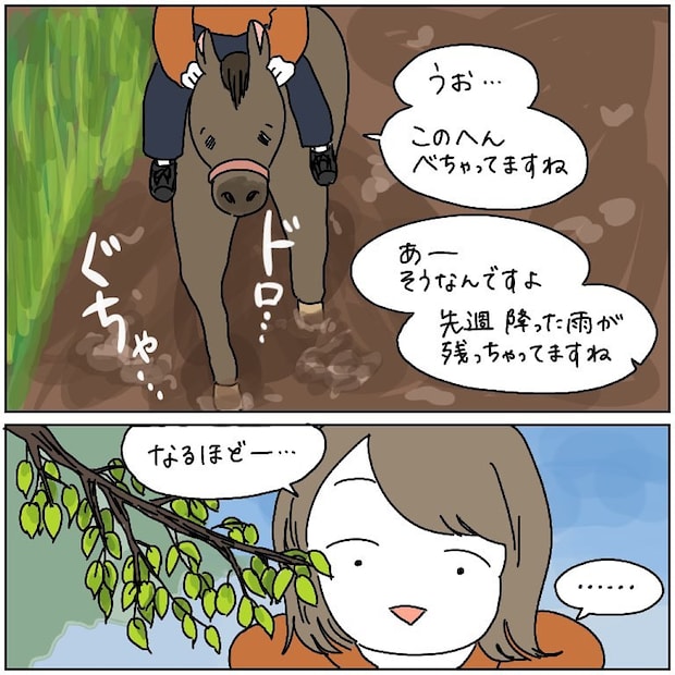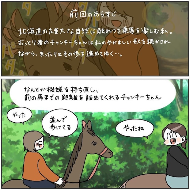 【ヤバい乗馬体験④】意気消沈の馬を「アカペラ」で励ました結果…おっ喜んでる!?(不穏)【momoの漫画】
