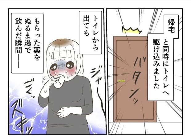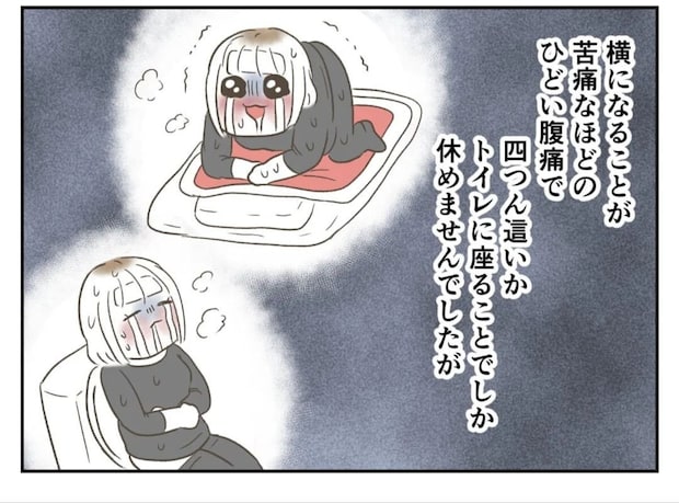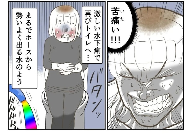 激しい腹痛に襲われ、救急搬送された尾持さん。病院で「食中毒」と診断されました。医師からは、「悪い菌をぜんぶ出し切るしかない」と言われ、自宅に帰宅。